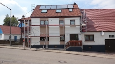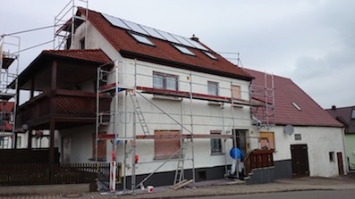 Fassadengestaltung (Putzbeschichtung/Kratzputz mit Anstrich)